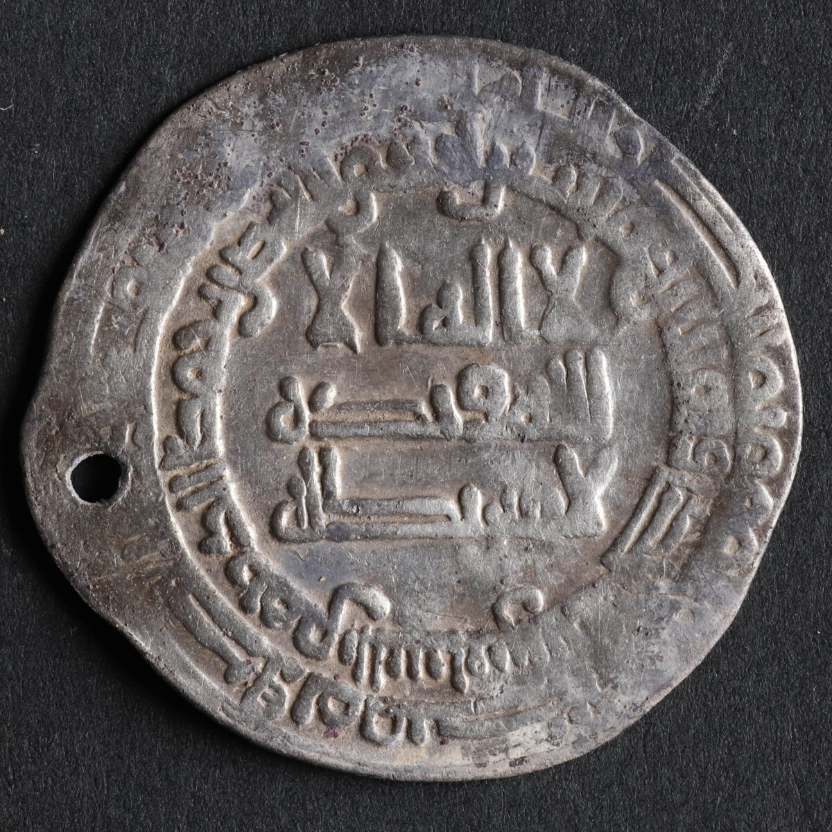 寶藏中為數不多的阿拉伯硬幣之一。大部分硬幣被維京人切成碎片。(來自丹麥Nordjyske Museer)