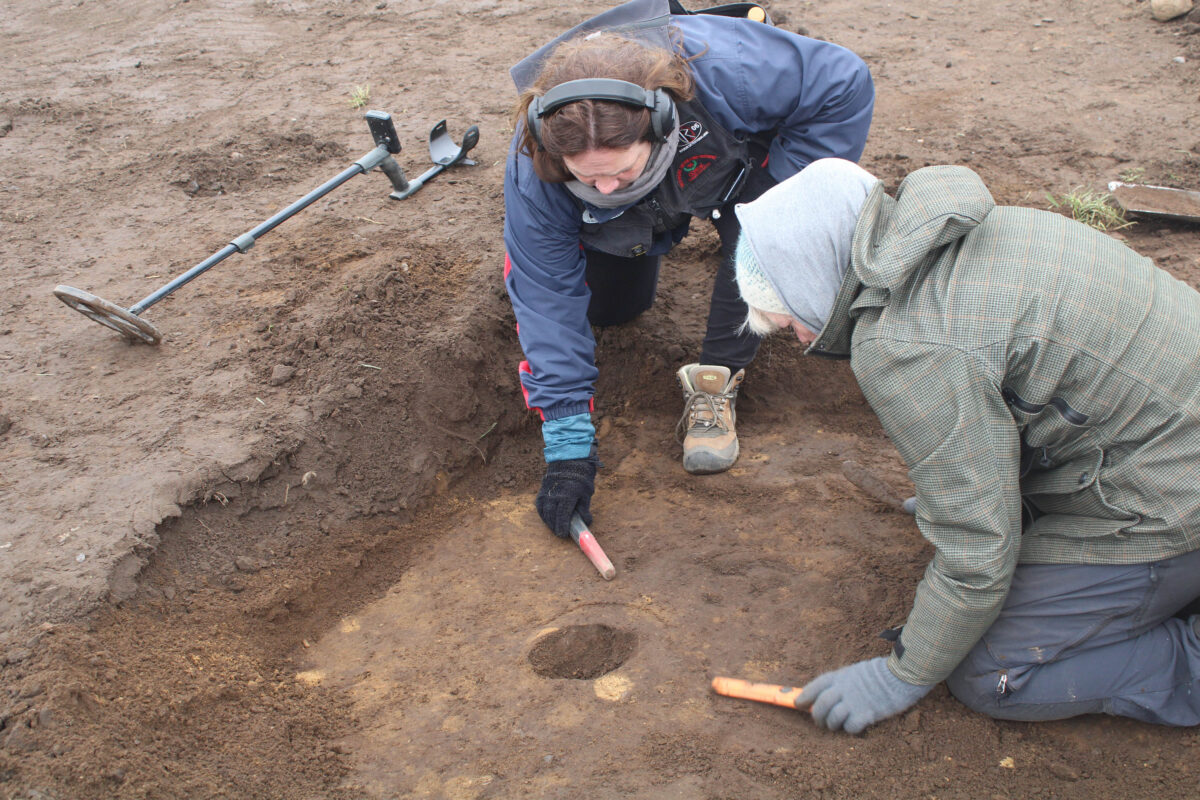 當地人協助研究人員用金屬探測器協助在土壤中尋找寶藏。(來自丹麥Nordjyske Museer)