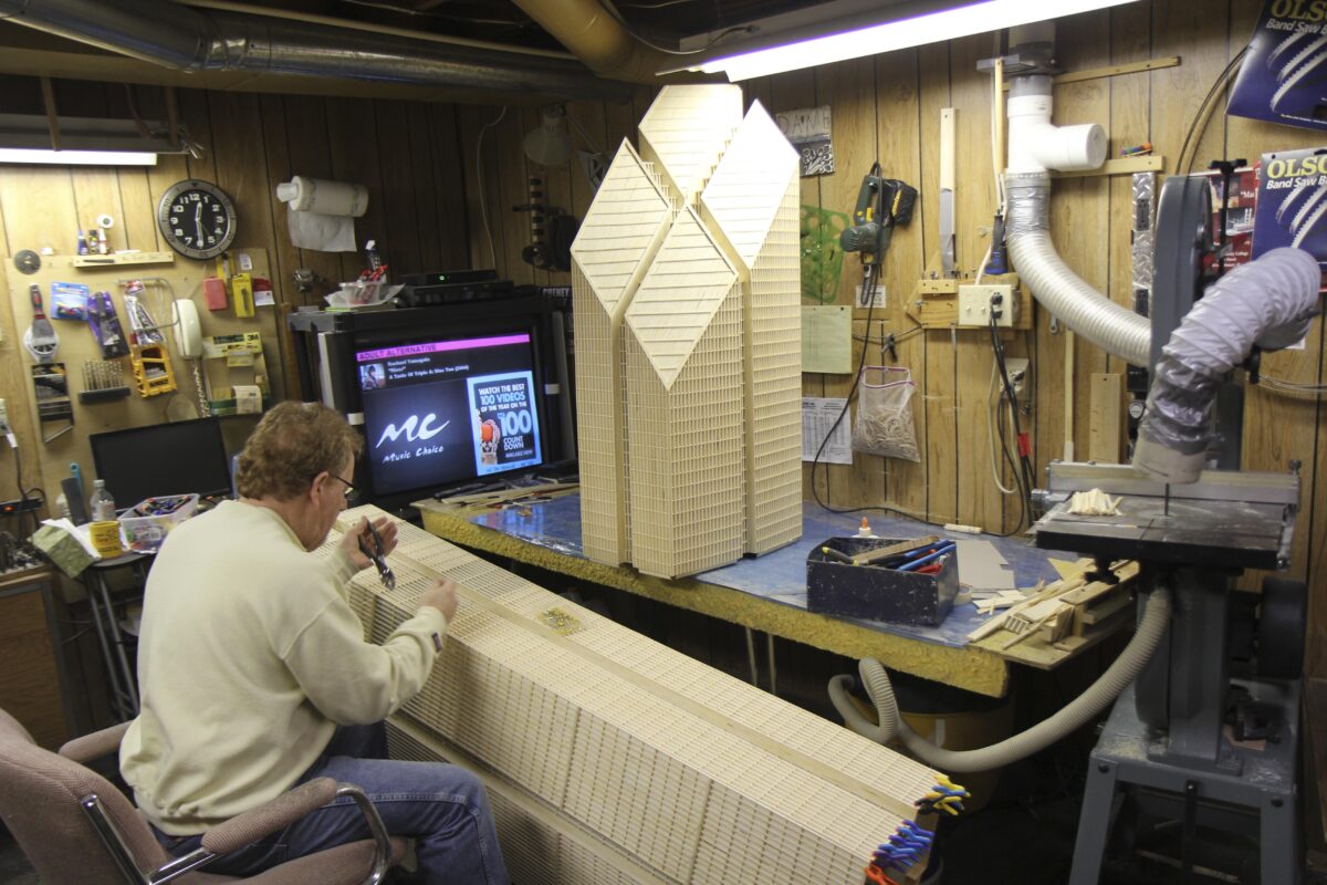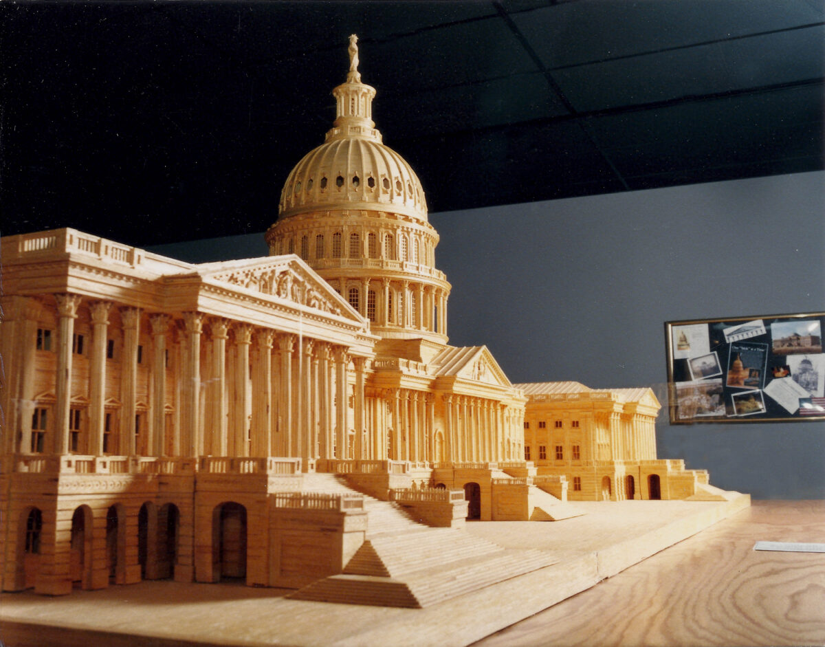 大約在2000年,他向妻子宣布,他要開始打造國會大廈這座「最雄偉的建築」。隨著互聯網的出現,設計將比以前容易得多。到了2000年代,你幾乎可以在網絡上找到任何東西,所以阿克頓在國會大廈的網站上花了很多時間。「我在等聯邦調查局到我家來逮捕我!」他說,「哇,看看這些平面圖。」雄偉的模型長12英尺。