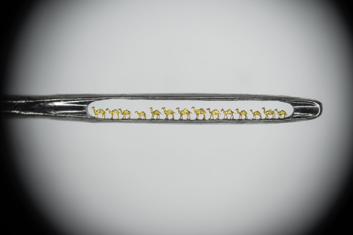 「有一天,我在電視上聽到有人在聖經節目中說,『駱駝穿過針眼比富人進入神的國更容易』。我母親給了我一根針,說,『把一頭駱駝放進去』」,威拉德說,「我必須找到一台顯微鏡。⋯⋯如果僅用手指,我無法做得更小。」