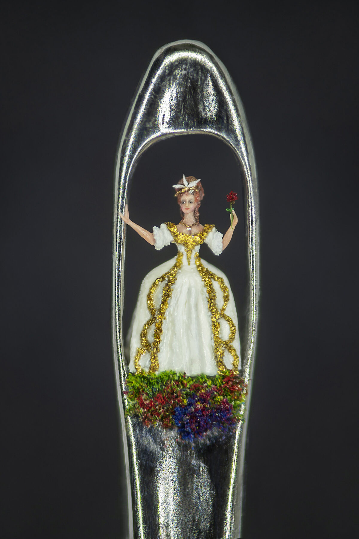 首先引起國際媒體關注的是他的微觀雕塑《白雪公主和七個小矮人》。