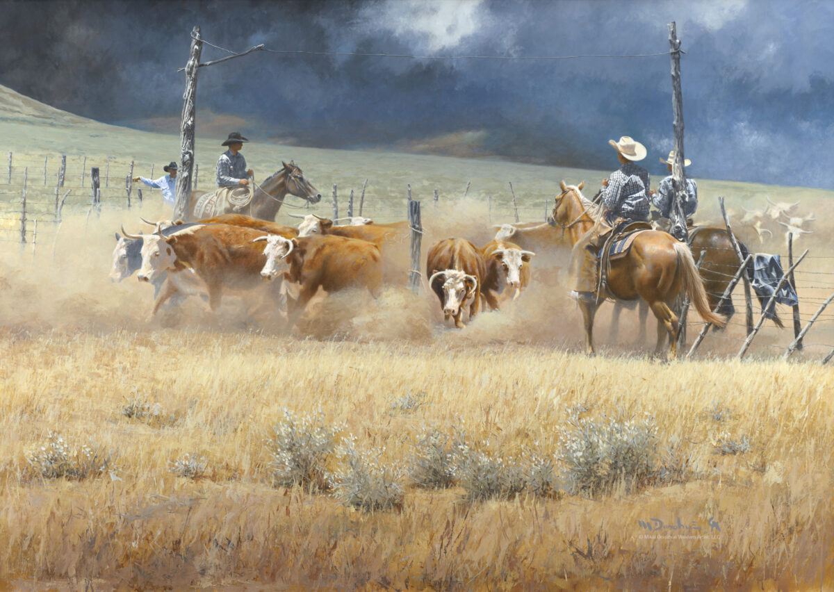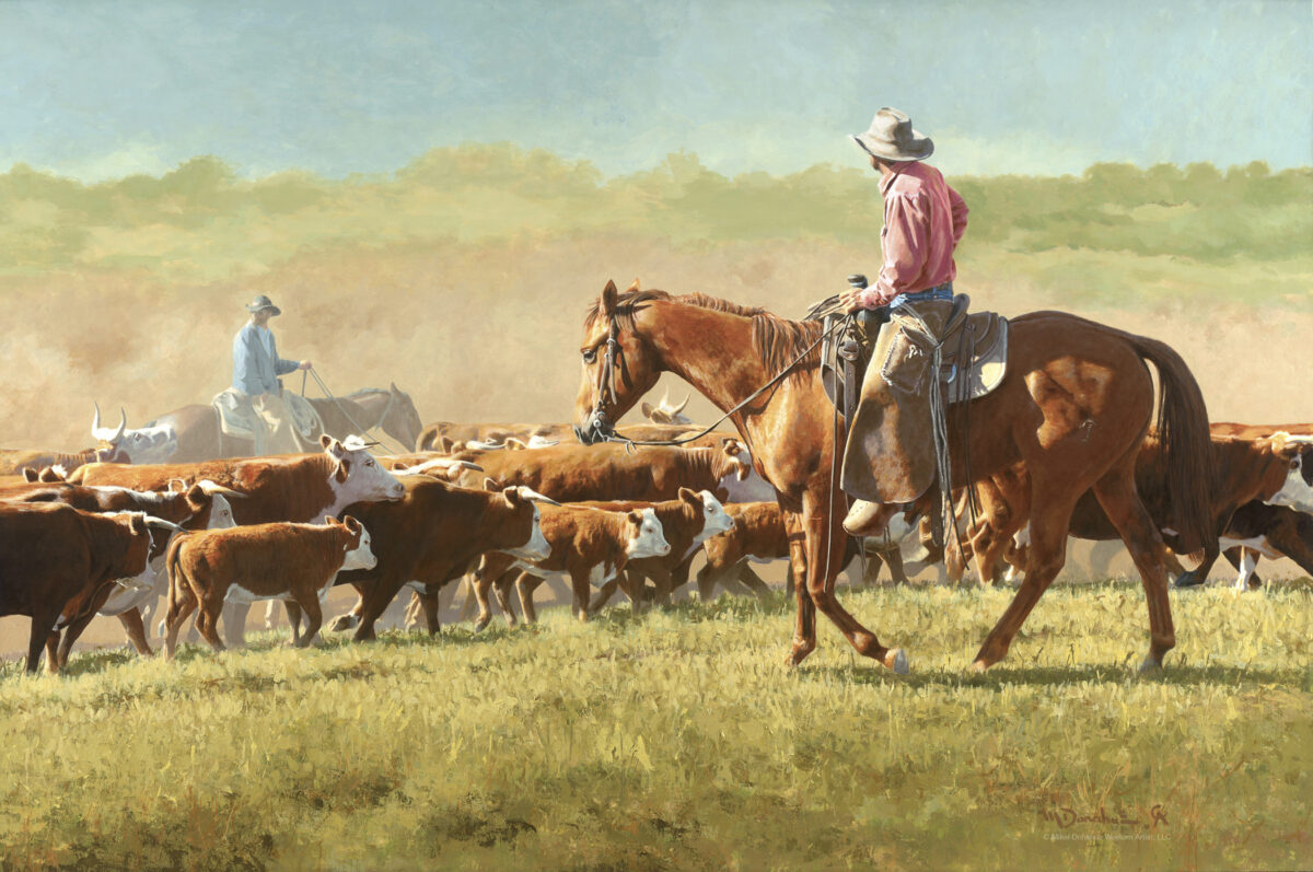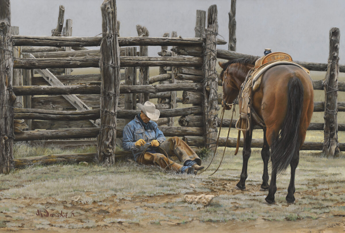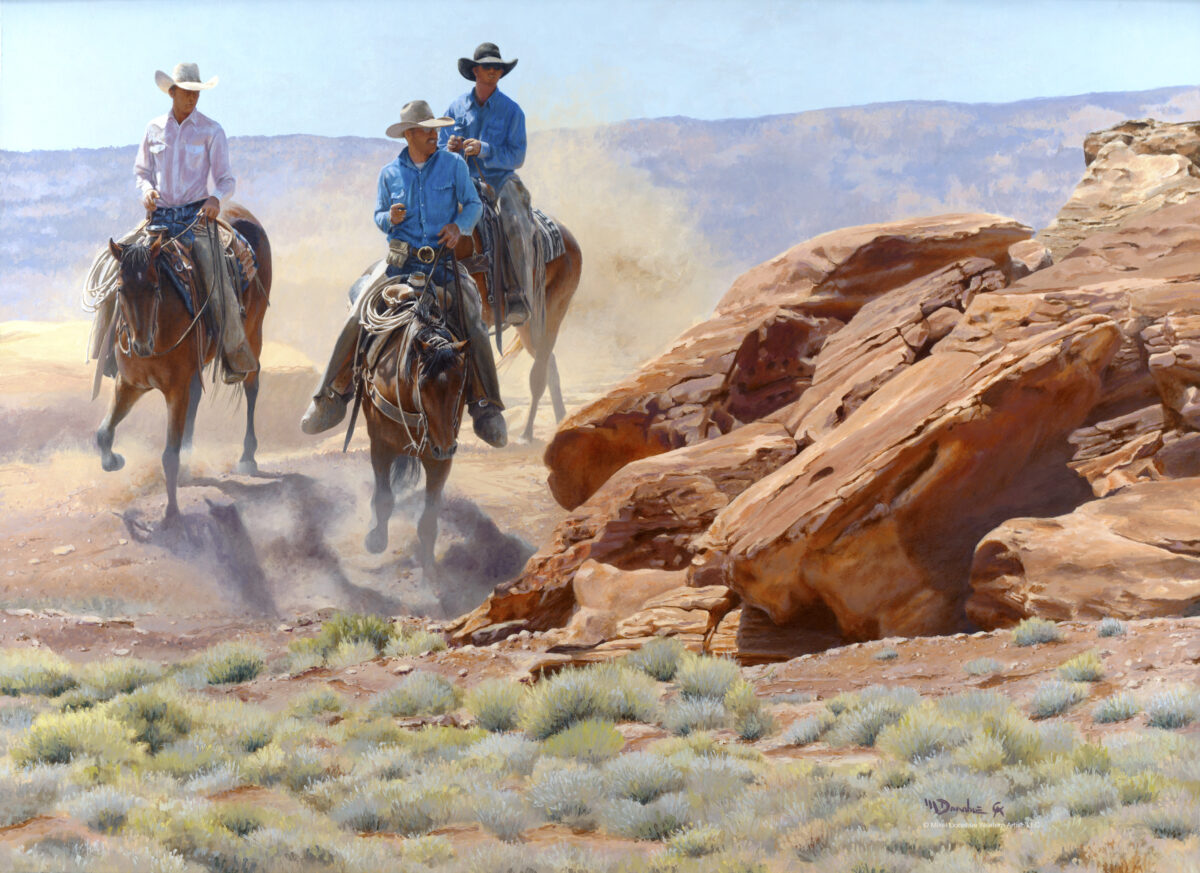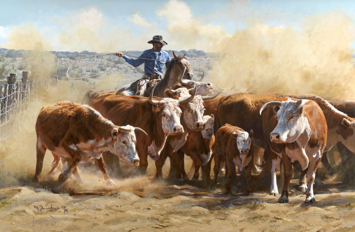 這位在祖父的牧場長大的塔爾薩(Tulsa)藝術家與從俄克拉荷馬州到亞利桑那州的牛仔一起做他們的「平凡」事情。他說,你必須加入「潮濕或泥土」的行列,牛仔們必須知道「你不是他們必須照看的人」。
