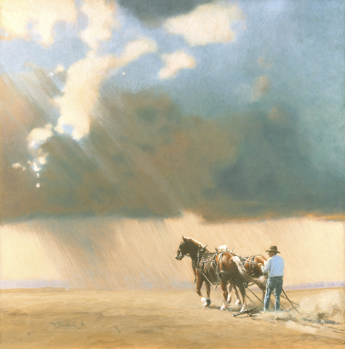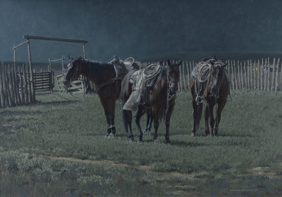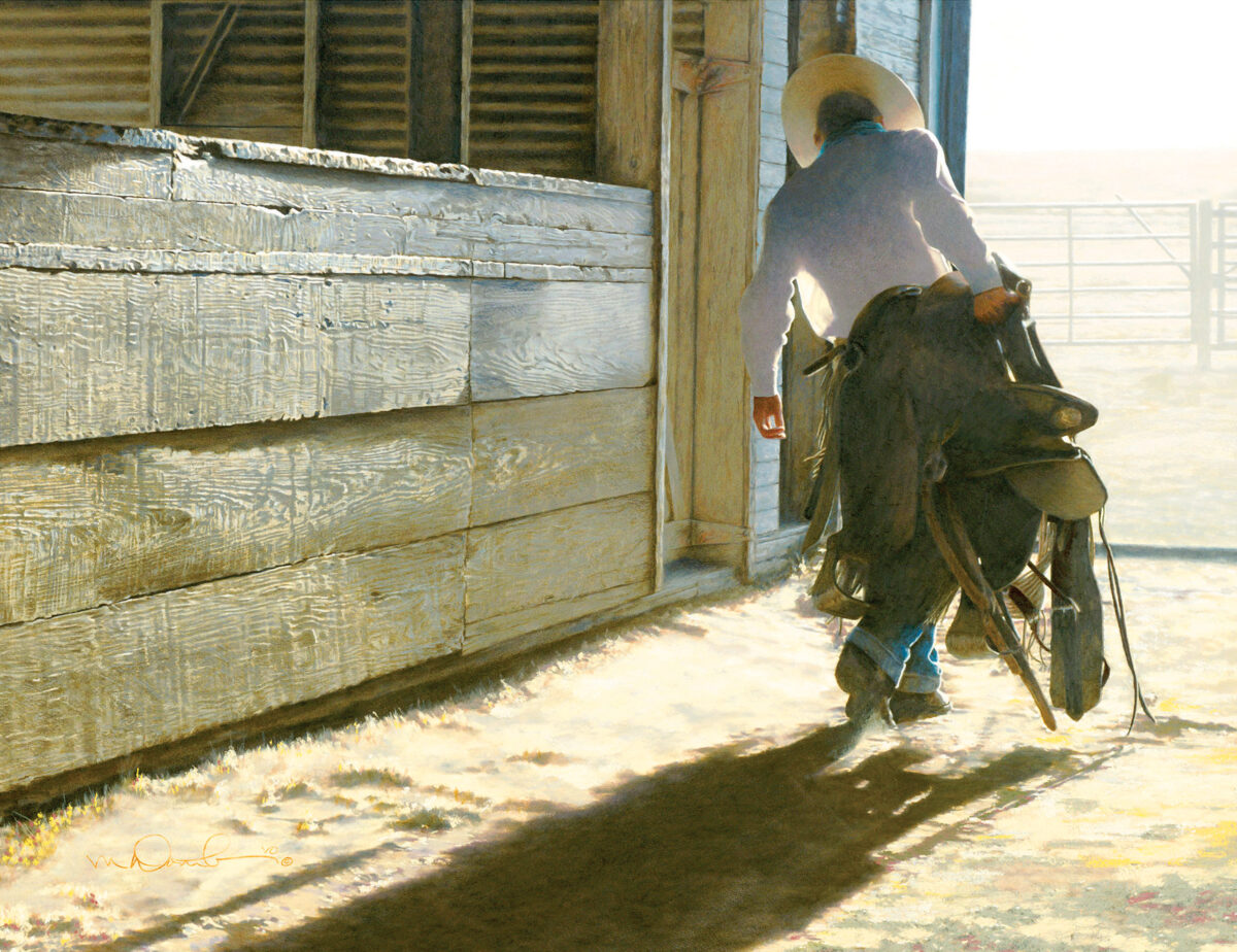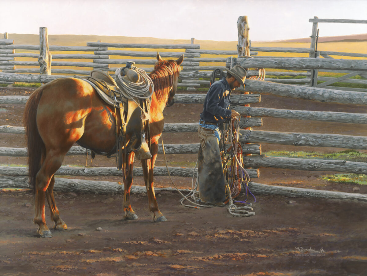 這位在祖父的牧場長大的塔爾薩(Tulsa)藝術家與從俄克拉荷馬州到亞利桑那州的牛仔一起做他們的「平凡」事情。他說,你必須加入「潮濕或泥土」的行列,牛仔們必須知道「你不是他們必須照看的人」。