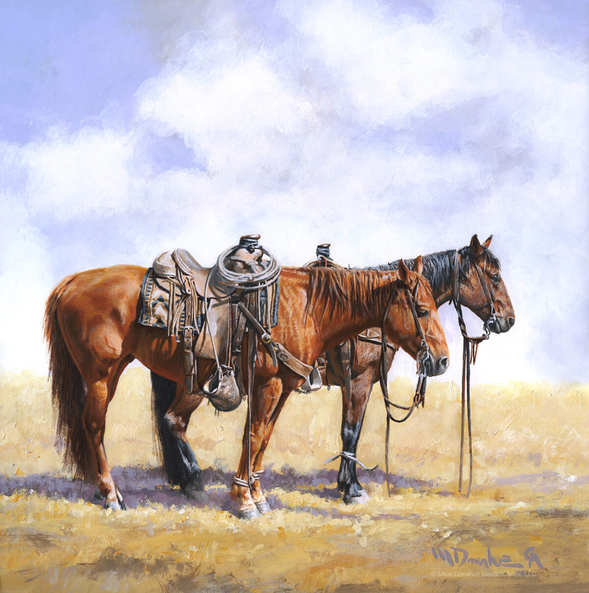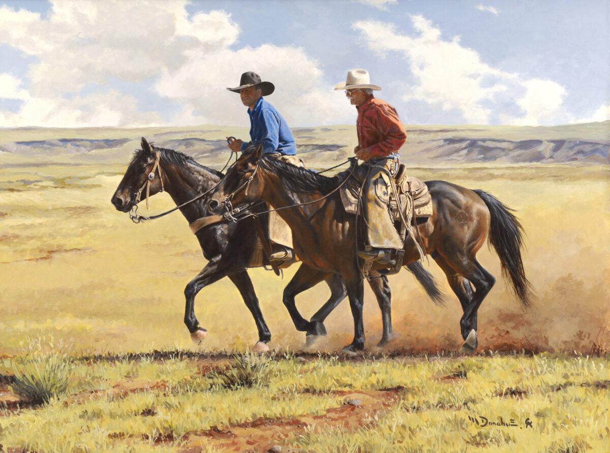 他的作品《漫長的日子》(Long Days)表現了牛仔的生活。這幅畫描繪了一個牧場主揹負著他的馬鞍,在漫長的一天結束時走向日落。在多納休最早的畫作中,這副作品在布法羅比爾藝術展和銷售(he Buffalo Bill Art Show & Sale)中獲獎,今天掛在懷俄明州科迪(Cody)的博物館裡。木板上的紋理和光線展現了藝術家高超的水平。在這幅畫中,他的設計技巧得到了充分發揮。