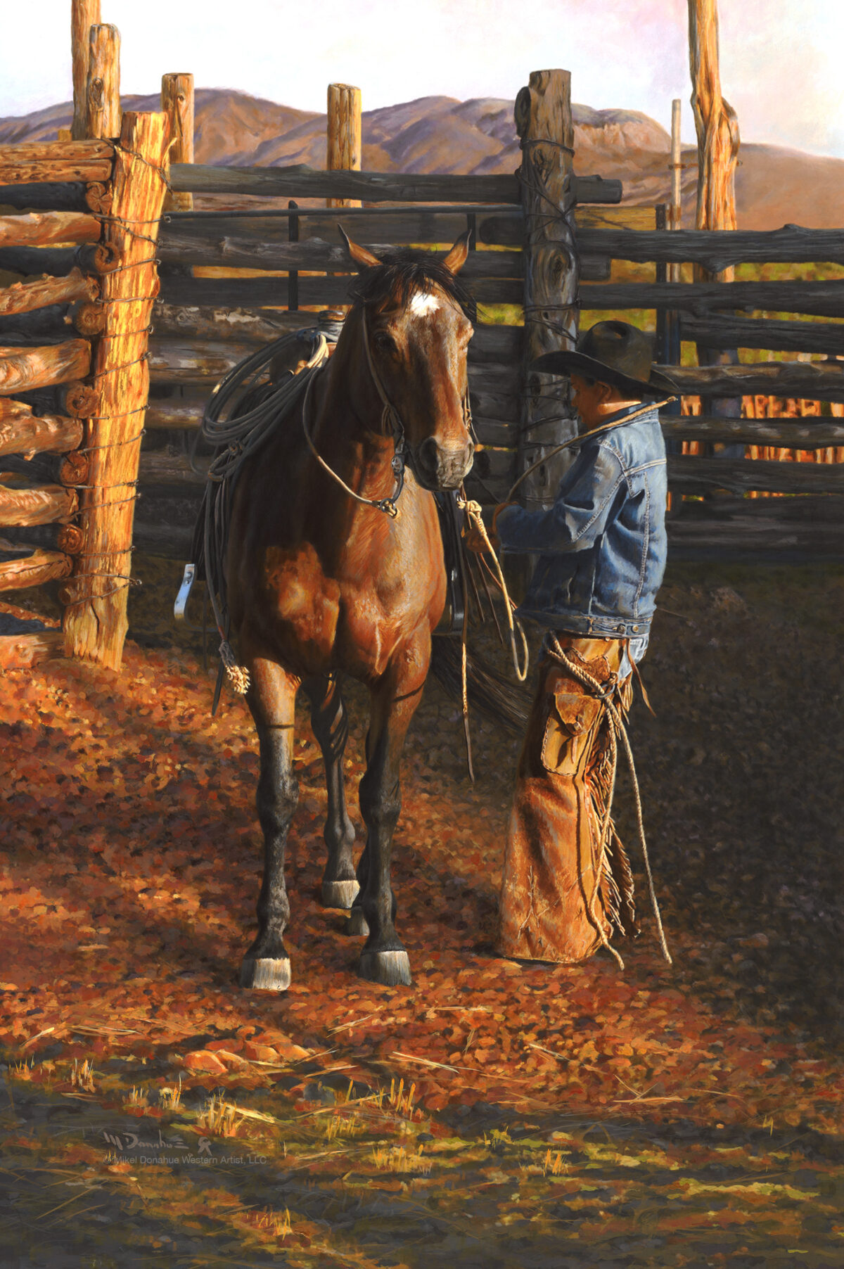 「我試圖做到逼真,我尊重牛仔和他們今天所做的事情」,67歲的多納休告訴《大紀元時報》,「對我來說,不使用模型非常重要。我畫的人或地方以及事物都是真實的。」