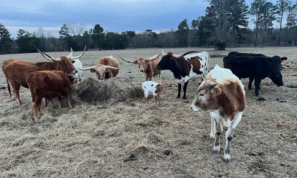 是的,他們也養了牲畜。除了30隻母雞、20隻馬斯科吉鴨和2頭庫尼豬外,他們還有5匹馬,更令人印象深刻的是,還有15頭德克薩斯長角牛。所有這些牲畜都是輪牧、整體和有機地飼養的,無需接種疫苗。他們還有兩個養鯰魚的池塘。