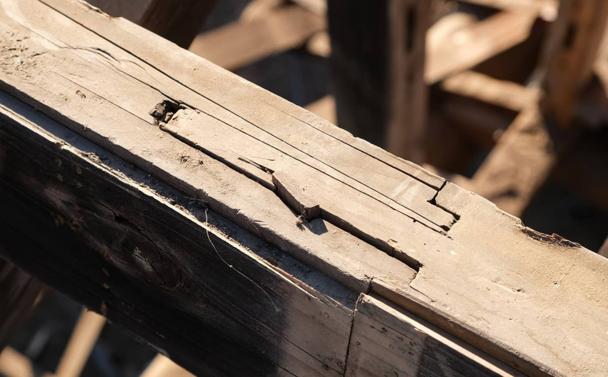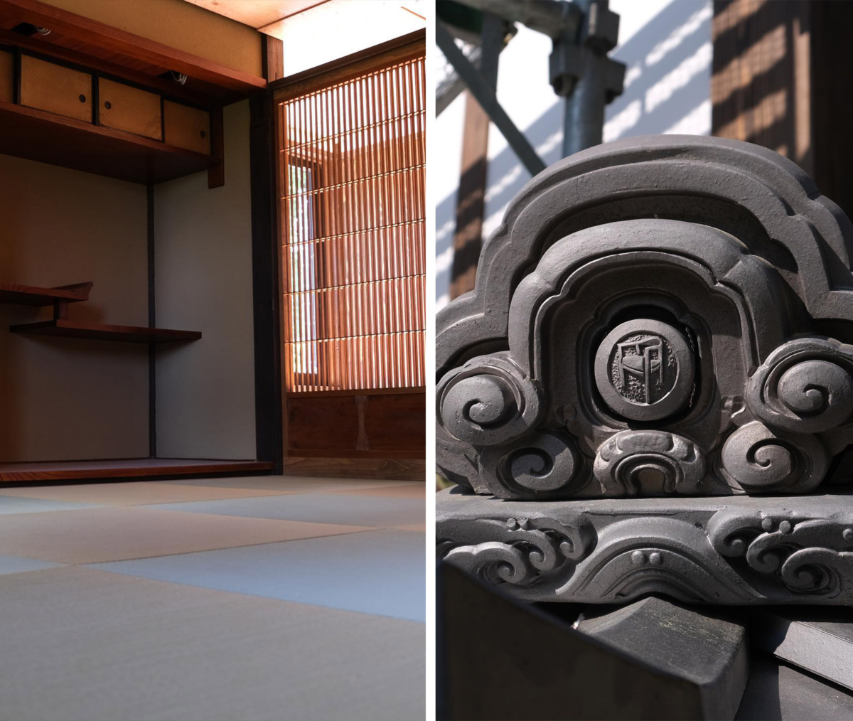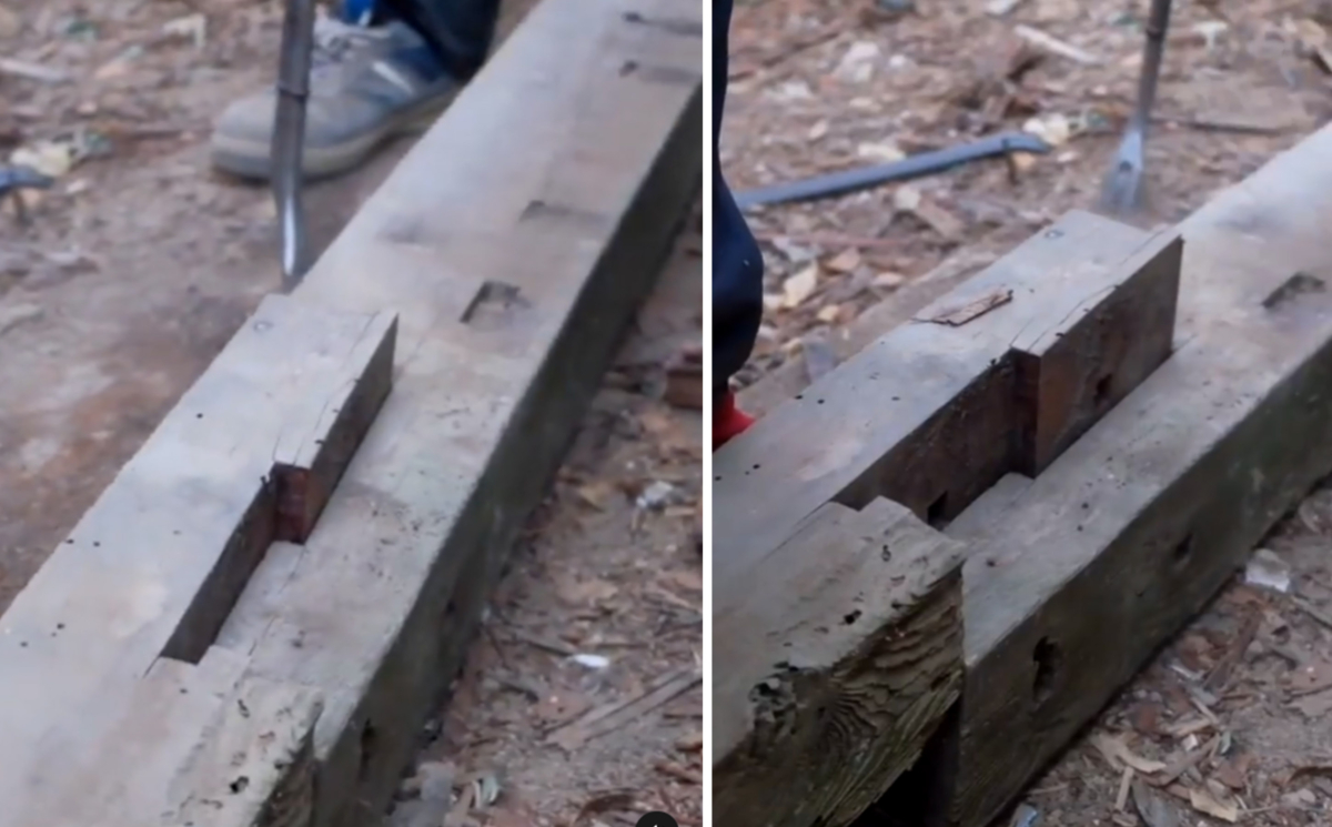 木工團隊發現另一個榫卯位於他們意想不到的地方,因為它不承重,也就是說,在水平直接位於混凝土地基上方的門檻中。這個榫卯結構被稱為「okkake daisen tsugi」,它包括兩塊交叉在一起的部件,一塊重疊在另一塊之上,由兩個鎖定它們的木針固定在一起。這個結構也存在於房梁中,因為它非常堅固。