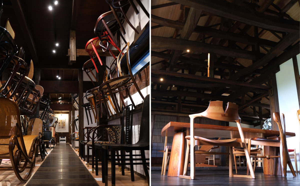今天,這棟古民宅被稱為椅子實驗室。它是一種准前衛的互動博物館,不僅向日本傳統木工的卓越致敬,也向現代椅子的設計致敬。主樓層陳列著來自世界各地的約300件精美家具。博物館有一個單獨的椅子木製品工作室,鑑賞家可以坐在那裡體驗各種椅子,還有一個閣樓,遊客可以在品嘗卡布奇諾咖啡的同時欣賞富士山。