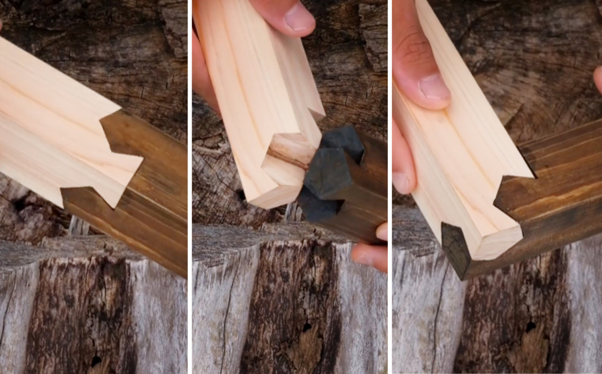 雖然不是本項目的一部分,但岩之遇到的最複雜的日本細木工結構是一種被稱為「kawai tsugite」的榫卯。這種獨特的榫卯可以互換連接,形成三個不同的角度,包括兩種不同類型的彎頭或直線。不用說,這個結構在網上受到熱捧。