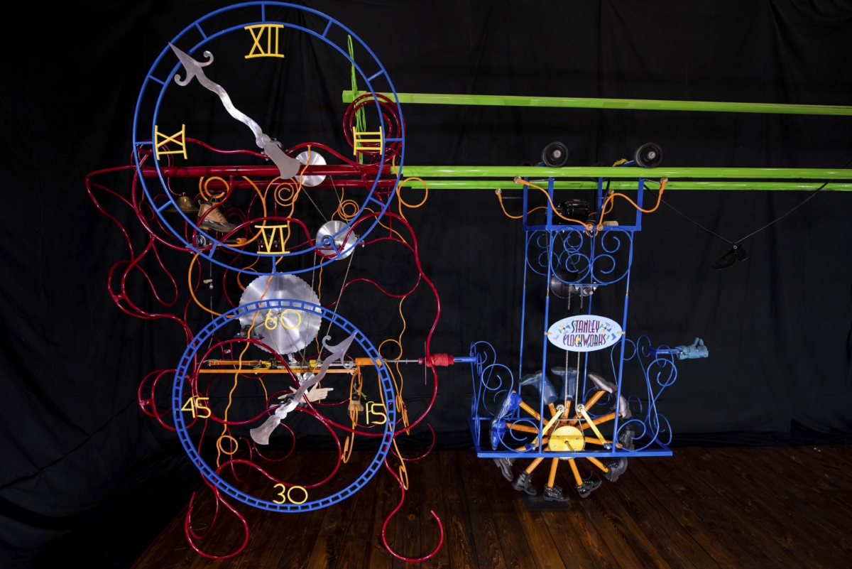 蘇斯博士風格(Dr.Seuss)的「行走時鐘」就是從這種創造力中誕生的。它長24英尺(7.3米),採用螺旋形、色彩鮮豔、手工彎曲的金屬,在他的穀倉中占據了相當長的牆壁。斯坦利先生在穀倉中展示他的作品。(註:蘇斯博士是美國著名兒童漫畫家。)