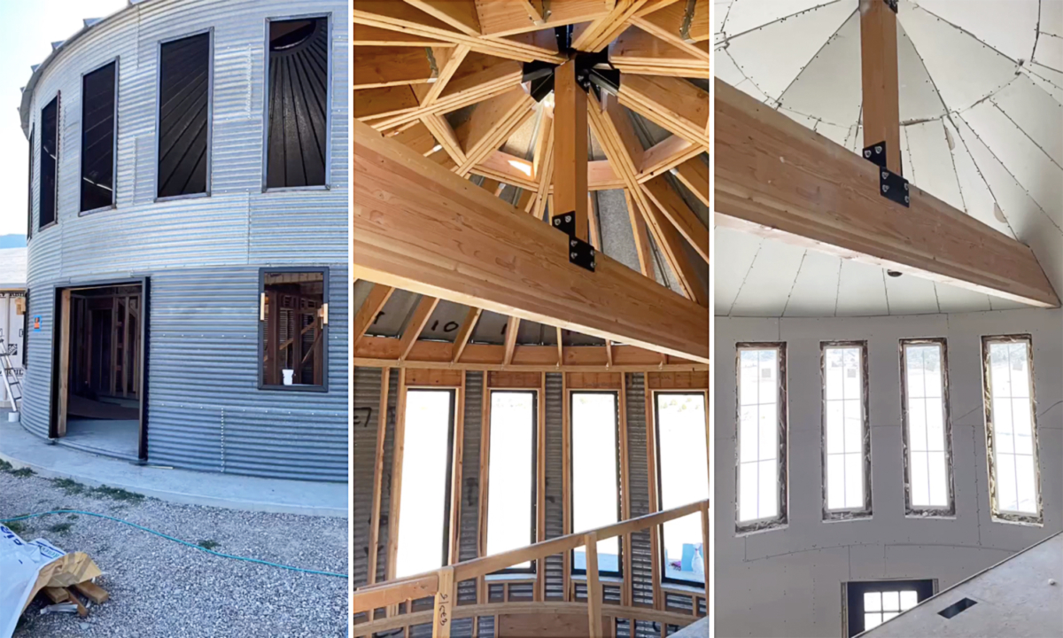 另一個難題是框架的頂板和底板必須配合筒倉的圓形,所以這些結構是用固定在一起的成型、堆疊的膠合板製成的,而不是2×6英尺的木板。