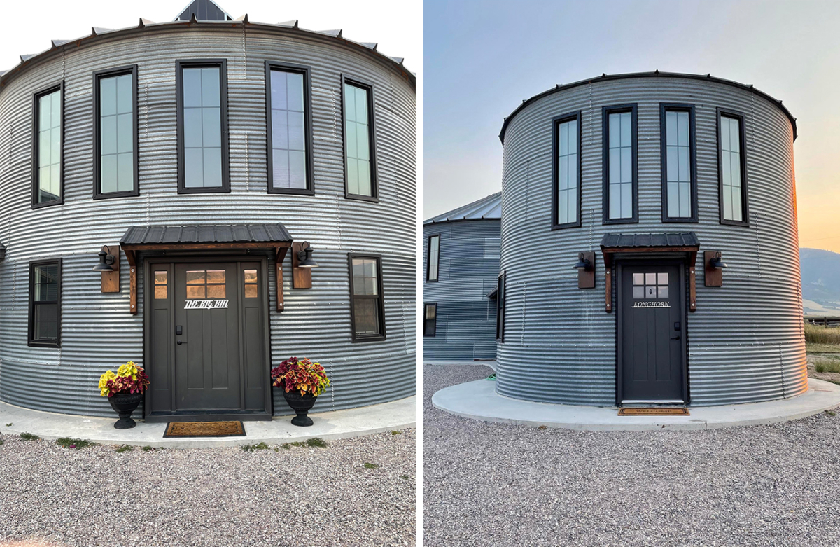 威克森先生的嫂子設計了帶有質樸西部圖案的「長角」(Longhorn)。主單元「大穀倉」(The Big Bin)位於中心,設有三間臥室、兩間浴室和廚房。自始至終,簡單的黑色或白色裝飾使內飾保持時尚和現代。