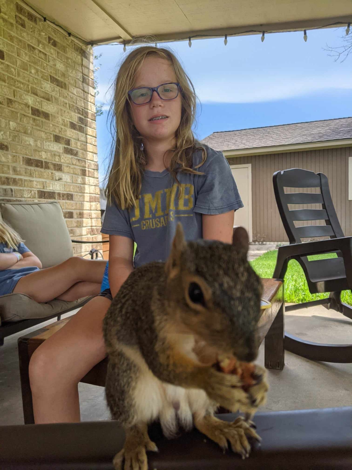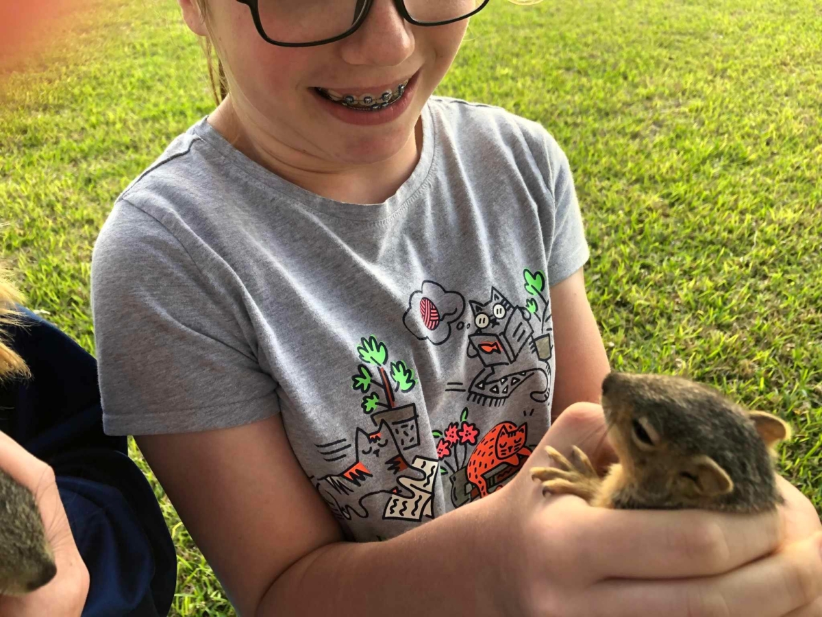 「萊利很勤快地照顧小松鼠。她是家裡的動物愛好者。」摩根說,「當她打開籠子時,松鼠會跑到她身邊,坐在她的腿上,和她一起玩。她說,『它可能已經大到可以在院子裡跑來跑去了。』」