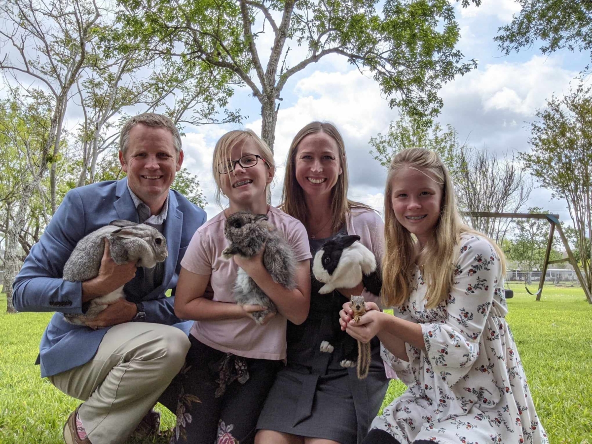 在復活節拍攝的他們最喜歡的家庭照片中,每個人都抱著一隻獲救的兔子,而格雷西抱著戴爾。