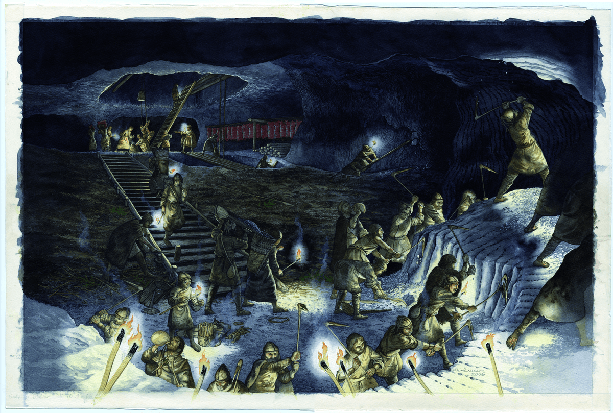 人類採礦活動的證據至少可以追溯到公元前5000年。1838年,礦工們在被稱為凱撒約瑟夫隧道(Kaiser Josef Tunnel)的通道中發現了一個原始的鎬。