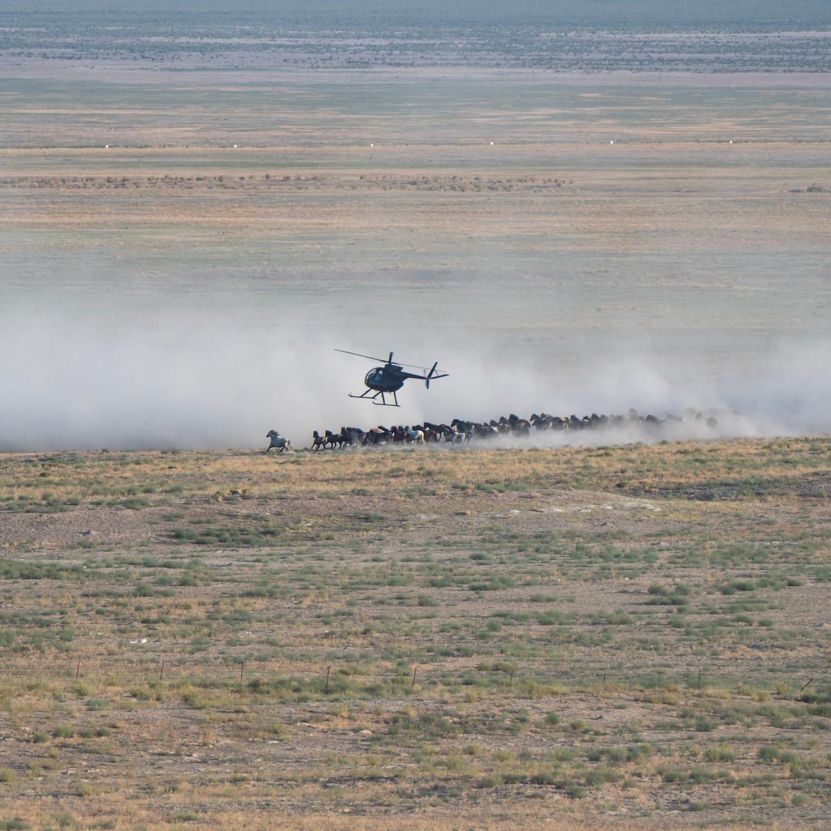 「觀星者」和諾拉在國家土地管理局(BLM)管理的超過20萬英畝的公共山谷裡上自由漫遊,四周環繞著杜松樹,散布著鼠尾草,還有「通往水源的小徑」,直到直升機來了將它們分開。