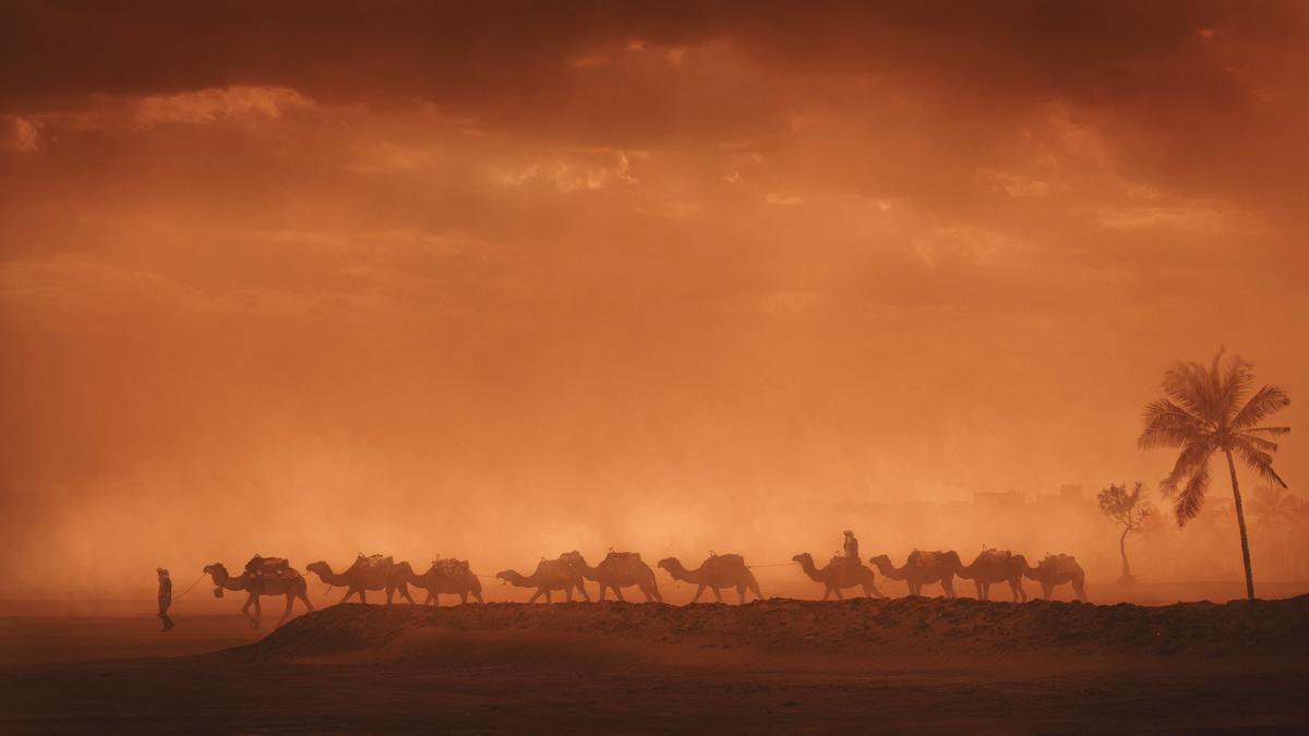 「20分鐘內,我享受了大自然的這份禮物。」尤尼亞談到他名為「梅爾祖卡2」(Merzouga 2)的獲獎照片時說。在照片裡,部落居民帶著駱駝在風沙中前進。