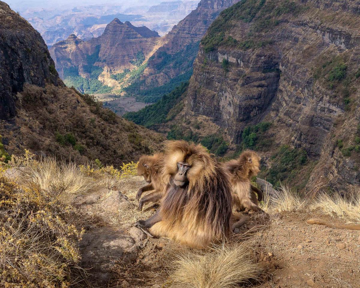 作為一種特殊類型的狒狒,這些狒狒睡在埃塞俄比亞山區垂直懸崖上伸出的小壁架上,以抵禦豹子襲擊的威脅。黎明時分,它們爬回高原上吃草,「這對它們來說是嚴峻的考驗,因為這種草沒有營養。」該雜誌說。