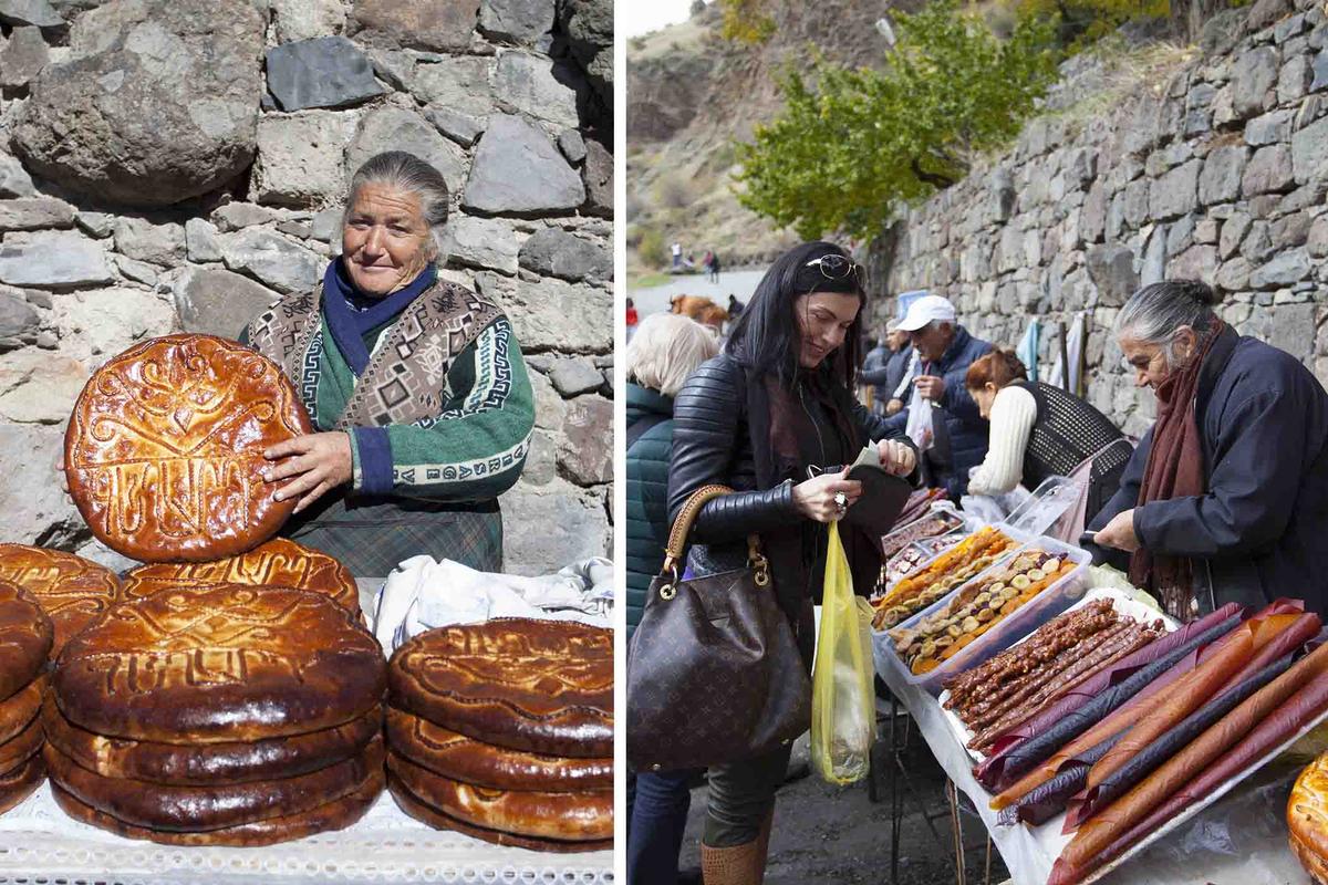 高聳的懸崖,豐富的歷史和精美的建築,使格加爾德成為遊客蜂擁而至的景點。沿著小逕往前走,人們會遇到一排排賣甜麵包的婦女,還有浸泡在葡萄糖蜜中的美味核桃串(一種稱為sujukh的甜點),以及扁平的乾果片(稱為lavash)等各種小吃。人們會聽到樂器的聲音,那是音樂家們在街邊演奏。