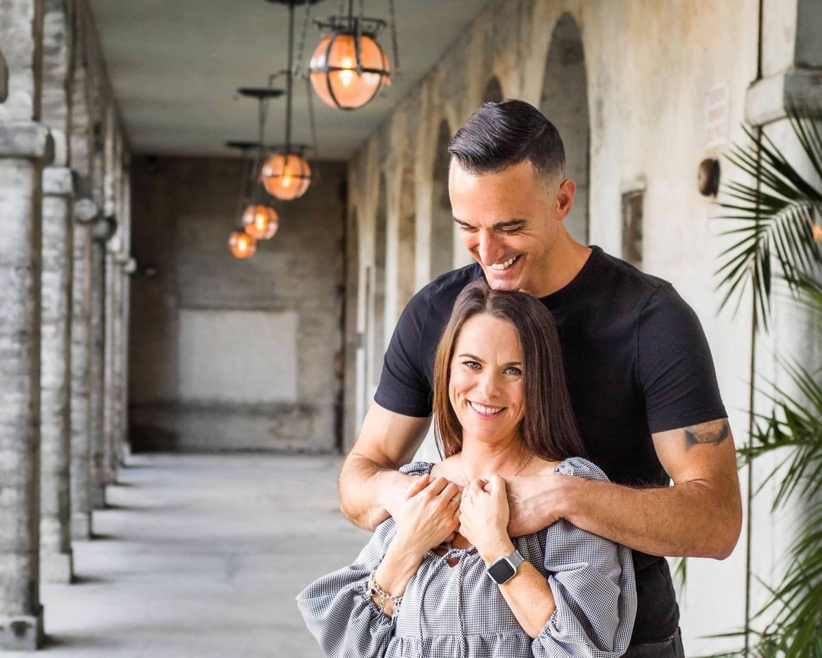 他們通過一個共同的朋友相識,他同意陪著她參加一個化裝舞會。「那是我們第一個相處的夜晚,都愛上了對方,接下來就不必多説了。」他說,「當她一次見到我時,她不知道我的背景,也不知道我的故事。我總是有辦法掩蓋這些。」