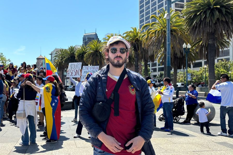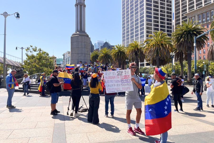 在當天的抗議集會中,60多位來自灣區的委內瑞拉裔居民,用西班牙語喊出「我們可以」(Si Se Puede)、「自由」(Libertad)等口號,並合唱委內瑞拉國歌《光榮歸勇敢人民》(Gloria Al Bravo Pueblo)。他們還散發傳單,發表演說,以響應在母國、美國、歐洲多個城市持續舉辦的全球抗議浪潮。