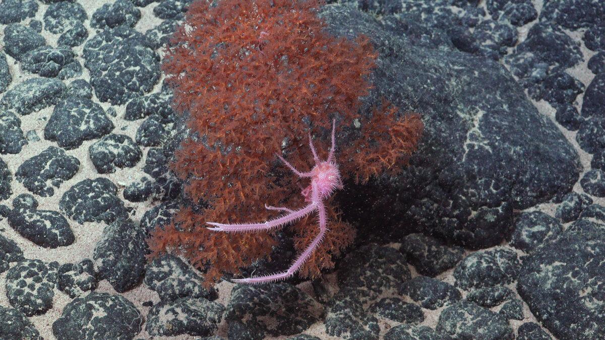 發現還不止這些。該團隊在探險期間進行的數百次潛水中記錄了一組棲息著底棲櫛母、藤壺、海星和蛇形動物的大型竹珊瑚。