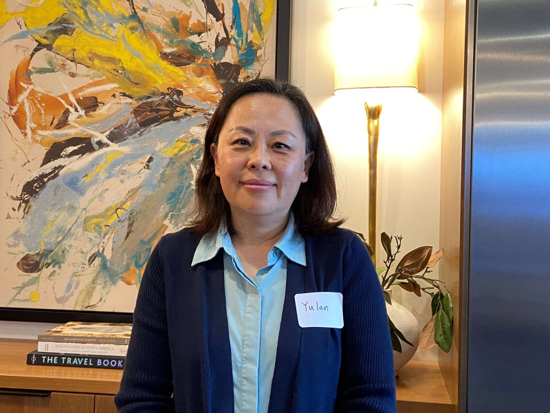 建東銀行密比瑞(Millbrae)分行資深副總裁、資深商業理財顧問Yulan Wu,在活動上接受大紀元採訪。(薛明珠/大紀元)