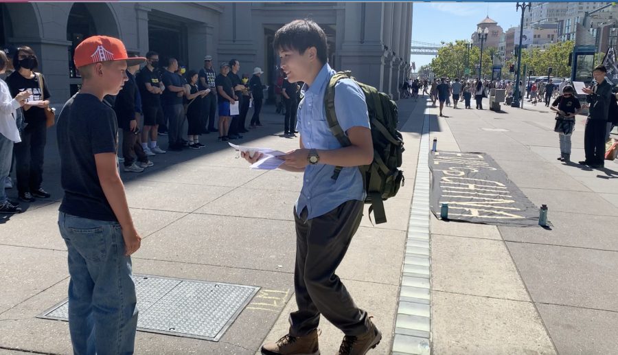 【大紀元記者林若水舊金山報導】 8月31日中午,舊金山的民運人士與原香港「反送中」參與者聚集在渡輪碼頭,舉行紀念「八三一事件」的集會,抗議六年前港府對和平市民的暴力鎮壓。現場人群中,有身懷六甲的孕婦,也有懷抱幼兒的年輕父親,既有當年的香港抗爭者,也有來自中國大陸的民主支持者,場面感人。活動由美國香港人會館施小姐與民運人士關永傑共同主持。
