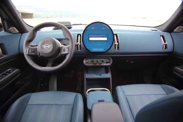 內裝方面,Favoured Trim配備舒適的運動座椅,以及全新設計的運動方向盤,採用布條取代傳統六點鐘位置的輻條,提升質感。肩部與肘部空間增加近1 ,提升駕駛者與乘客的舒適度;更寬敞的內部空間與儲物空間,是MINI Countryman的最大賣點,後座摺疊後,行李廂容積可達51 cu-ft,輕鬆容納大型物品。前台採用雙色布料設計,延伸至車門內板,內藏LED燈,可營造溫暖感。中間的9.4 圓形OLED顯示螢幕,配備高質感玻璃表面,內裡運行第9代MINI OS系統,可透過觸控或語音控制所有資訊娛樂與輔助系統。MINI體驗模式提供不同模式,包括Trail、Personal、Core、Timeless、Go-Kart、Vivid、Green和Balance,除了螢幕的設計不同,也會以氣氛燈發出不同顏色,令體驗也不同。