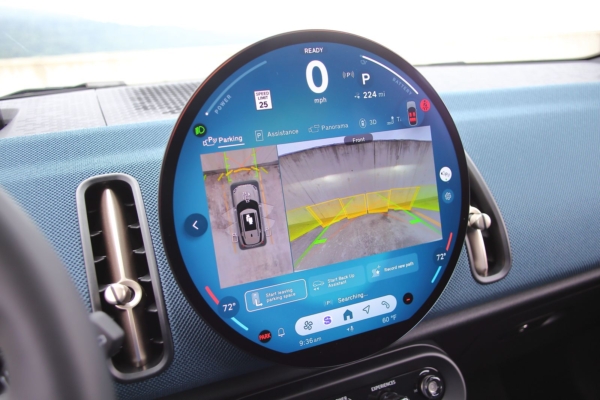 車速顯示會在中控台圓形螢幕上顯示,所以MINI Countryman刪除了儀表板,只以可升降的HUD代替。選配的全景玻璃車頂為車內增添光線,營造明亮舒適的氛圍。電動尾閘是這一代Countryman的亮點之一,它既可以透過遙控車匙開啟,也可在車內按鍵打開,最特別的是它也具有「踢腳」開門功能,只要帶著車匙,走近尾閘,用腳在車尾底部(近中間位置)踢一下,感應器便會開啟尾閘,也可以同樣方法關門,但關門前更會有聲響提示。