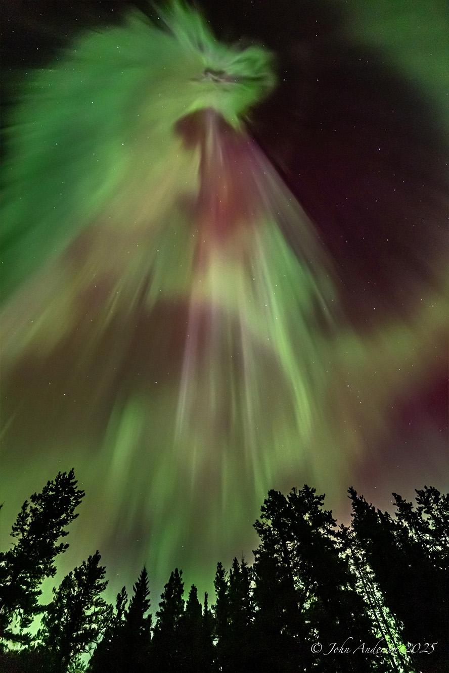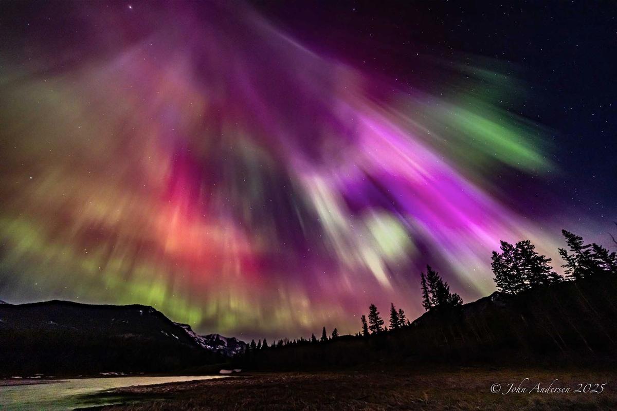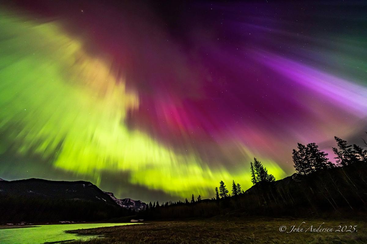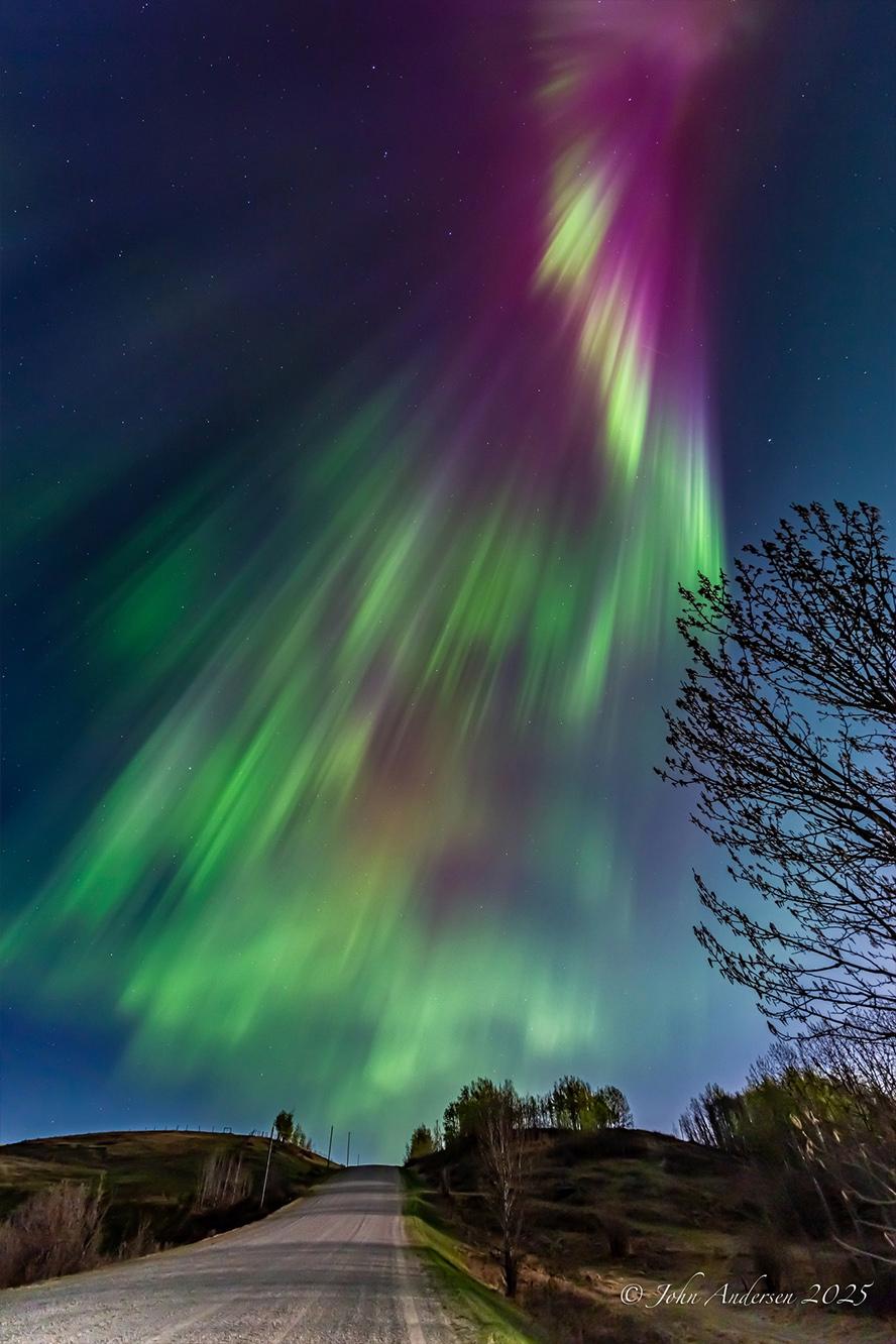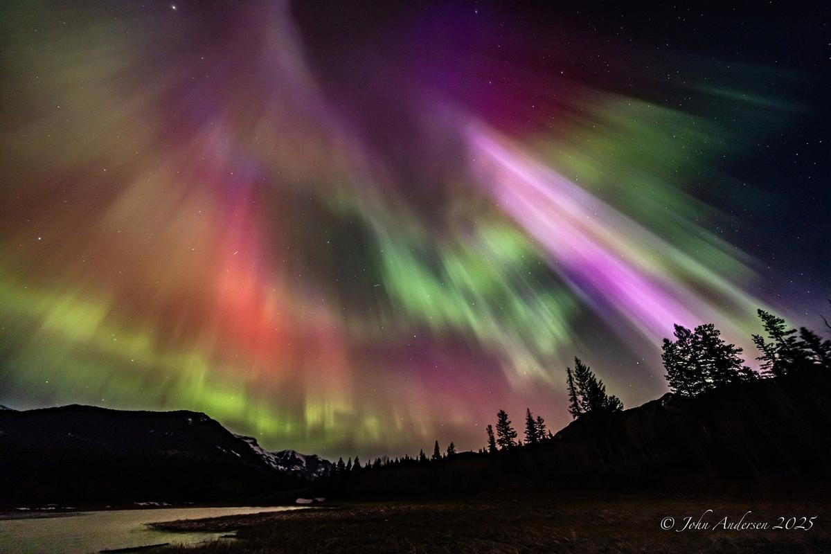 安德森居住在卡爾加里市,從事石油行業地質工作。通常情況下,在卡爾加里市區範圍內,很難看到極光(北極光),並且大多呈綠色。他會尋找城鎮北邊更黑暗的鄉村景色。他的攝影作品展示了粉色、紫色和黃色,這些都表明存在強烈的磁擾動。
