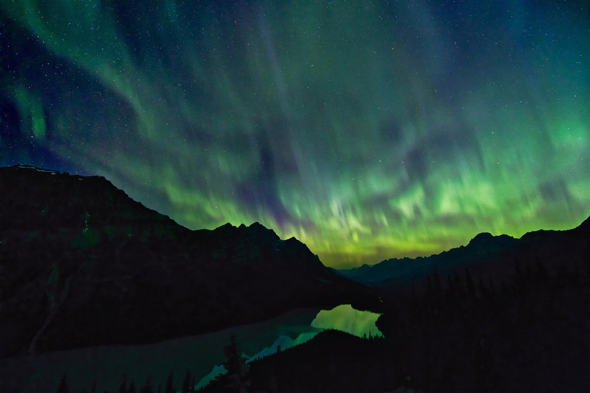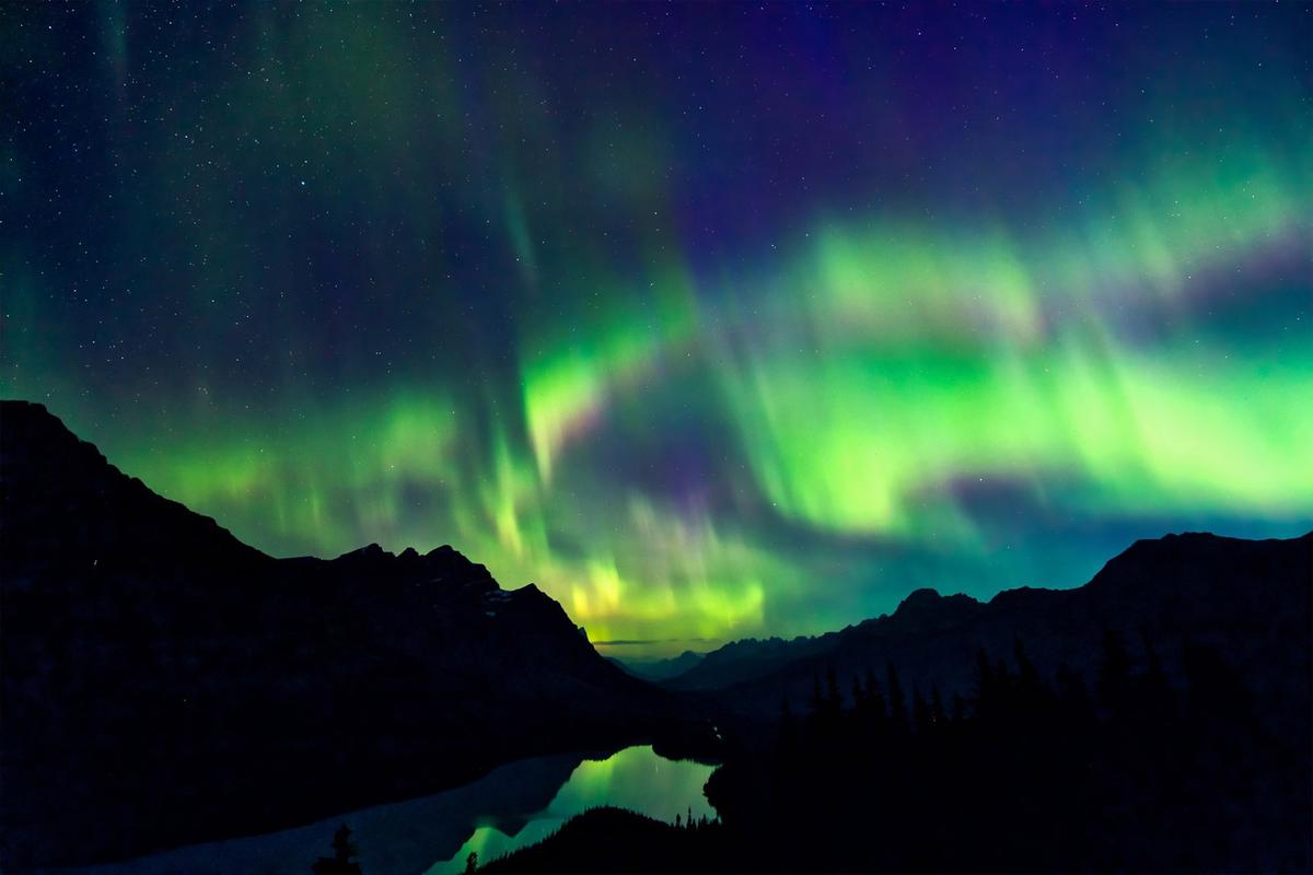 北極光出現在最南至熱帶的地方,據說照亮夜空如此明亮,以至於人們能借光閱讀報紙。它們散發出鮮明的深紅色,以及紫色、綠色和黃色的色調。