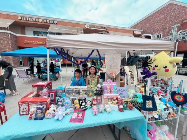 有一個攤位與眾不同,三個小朋友把賣東西變成了有趣的「釣魚」活動。民眾買一張票,就可以拿著一根帶夾子的「釣魚竿」,從一個空洞伸進帳篷,一會兒就釣出一個可愛的玩具。過程中既賣了商品,又讓買家體驗到驚奇和樂趣。三人蹦蹦跳跳、說說笑笑之中,吸引了不少挑戰者。