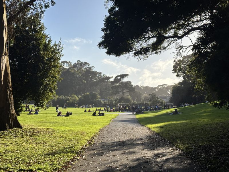 金門公園一帶人潮如織,樂迷攜家帶眷,野餐聆聽,在微風與霧氣中共享音樂的自由與浪漫。