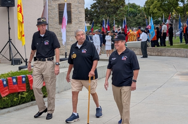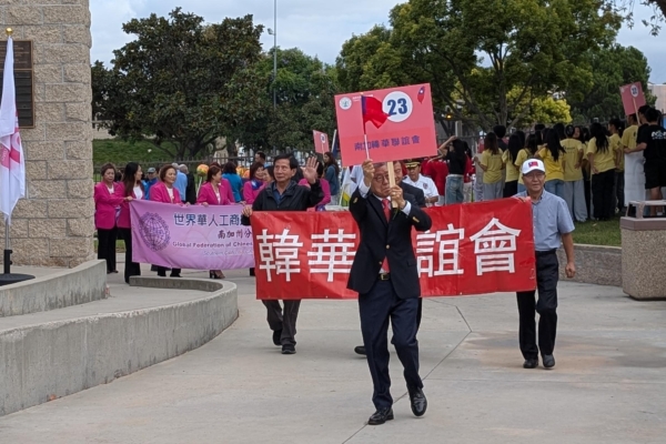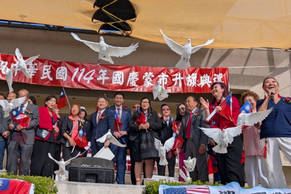 隨著中華民國台灣六都市旗與各縣市旗陸續進場,「介壽號」紀念飛機盤旋三圈,引來僑民熱烈歡呼。從早期廣東移民、台灣鄉親,到越南、柬埔寨、寮國及韓國僑胞,乃至近年自中國大陸旅美的新移民,大家齊聲高喊「中華民國萬歲」,展現超越歷史與世代的凝聚力。典禮尾聲釋放象徵和平的白鴿,祝願台美友誼長存、世界和平。