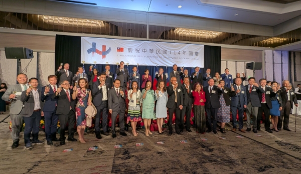【2025年10月05日訊】(記者徐曼沅洛杉磯報導)為慶祝中華民國114年雙十國慶,駐洛杉磯台北經濟文化辦事處於3日(週五)下午在環球影城旁的希爾頓飯店舉行國慶酒會,吸引近千位來自政界、僑界與學界的嘉賓出席,共同慶賀中華民國生日。周邊車道插滿中華民國與美國國旗,展現台美關係持續深化以及雙方友誼的堅實基礎。