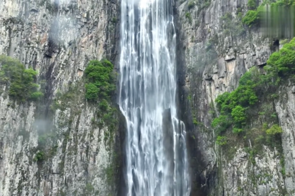 三級瀑布從山澗頂部奔流而下,寬逾30米,高低落差超過300米,非常壯觀,是中國最高的瀑布。