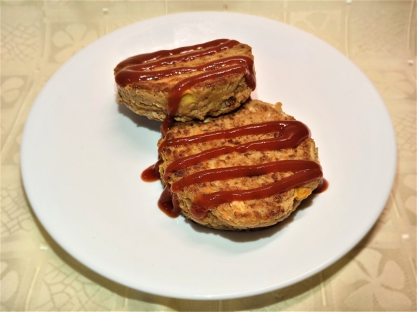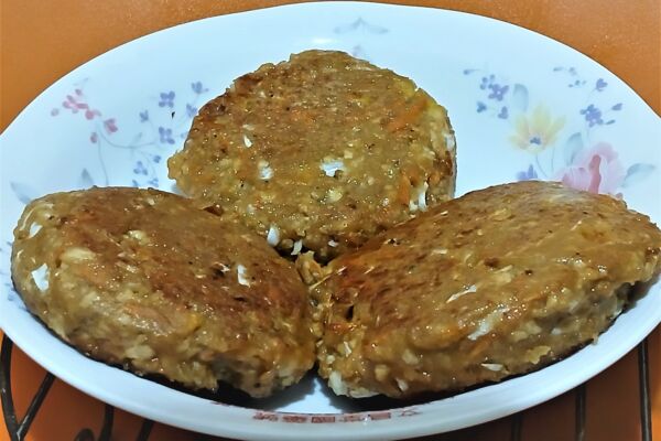 5.所有食材都拌勻後,用植物油潤鍋,開小火煎餅,兩面煎成金黃色就完成了。