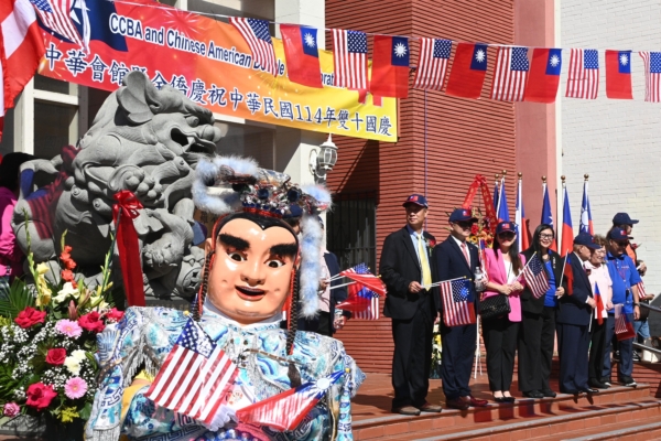 早上10點,百老匯大道上鼓樂喧天、旗海飄揚,遊行隊伍依序前進至中華會館,台灣三太子也現身遊行隊伍慶祝雙十節。隨著美國與中華民國國旗冉冉升起,全場高唱中華民國與美國國歌,會後在國父孫中山銅像前獻花致敬,為活動畫下圓滿句點。
