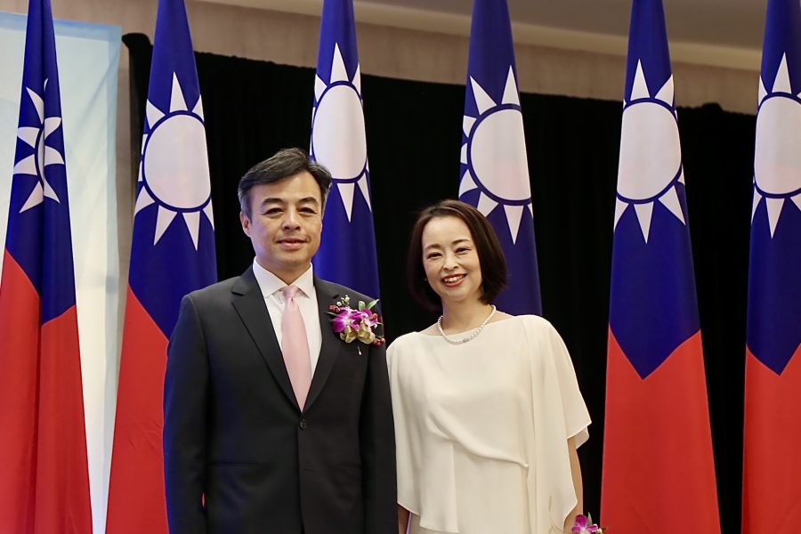 伍志翔處長和夫人劉若茵一起出席民國114年國慶酒會。(薛明珠/大紀元)