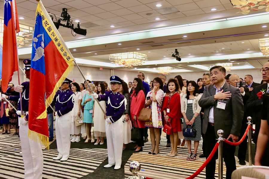 現場演唱美國與中華民國國歌。(薛明珠/大紀元)