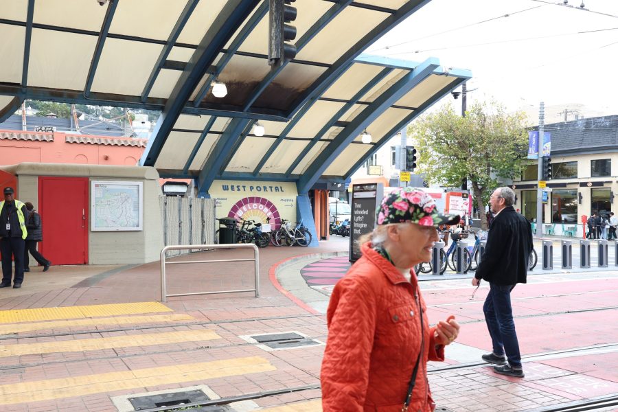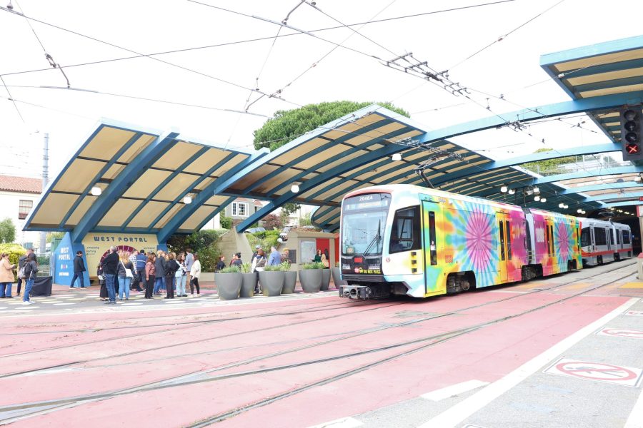 Muni輕軌M線在西門站(West Portal Station)行駛。(路小玉 / 大紀元)