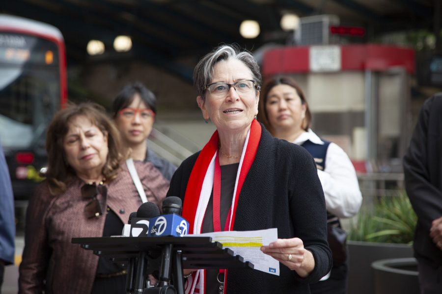 舊金山交通局(SFMTA)董事會主席珍妮特・塔洛夫(Janet Tarlov)為活動致辭。(周鳳臨 / 大紀元)