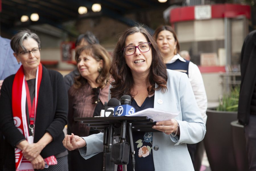 舊金山交通局(SFMTA)局長寇淑寶(Julie Kirschbaum)為活動致辭。(周鳳臨 / 大紀元)