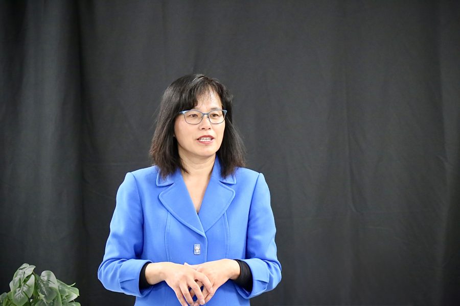 Saratoga市議員趙嬿在新聞發布會上。(薛明珠/大紀元)