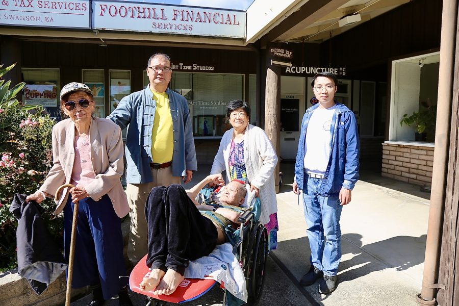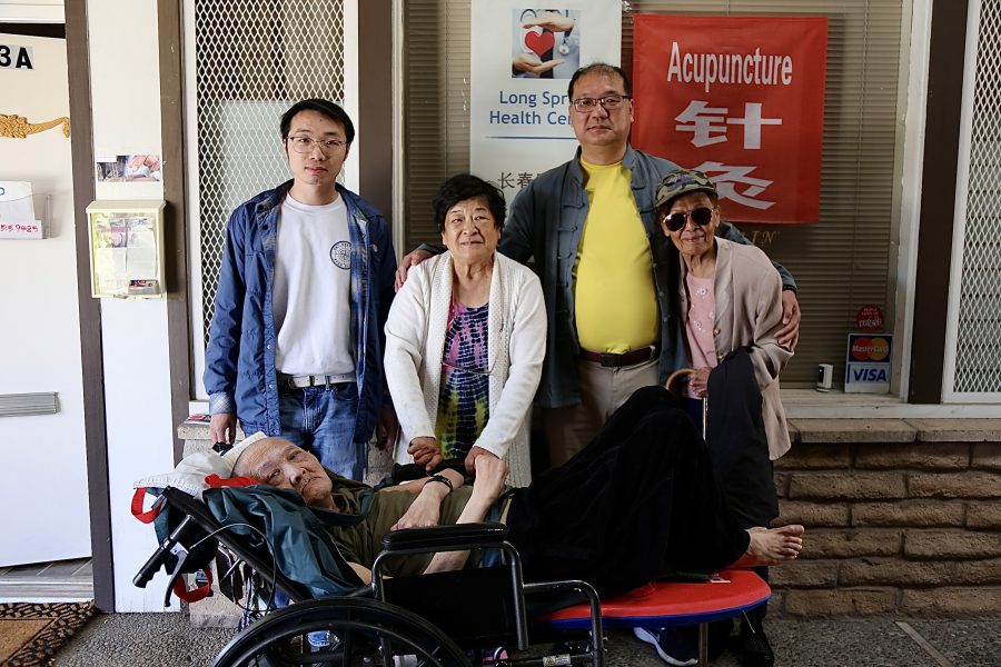 太醫傳人 Peter 楊與學生及患者,在診所門前合影留念。(薛明珠/大紀元)
