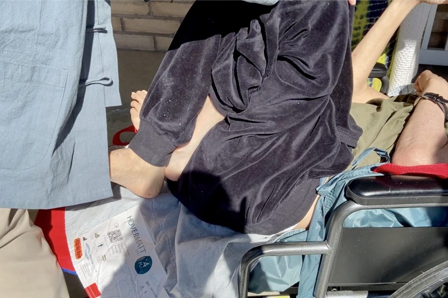 當天,彭曉玲推著躺在輪椅上的71歲彭昆山前來就診。彭昆山兩年前中風,最初仍能行走、自理生活,但過去一年病情惡化,近幾個月雙腿交叉緊扣、無法伸直,只能長期臥床。彭曉玲說,彭昆山近來雙腿緊貼難分,連更換紙尿褲都十分困難。經 Peter 以鬆筋手法、點穴與按摩導引調理後,彭昆山的雙膝逐漸鬆開,雙腿也能稍微伸展。Peter 解釋:「這不是骨頭問題,而是肝筋收縮。」