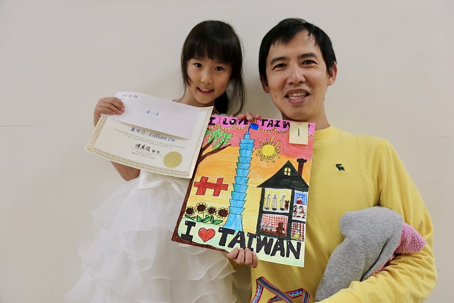 幼兒組第一名得主盧侑芯和父親。(薛明珠/大紀元)
