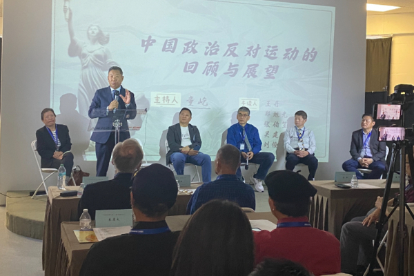 當天連續進行了三場討論,首場以「中國政治反對運動的回顧與展望」為主題,由前六四學生童屹女士主持,最為引人矚目。