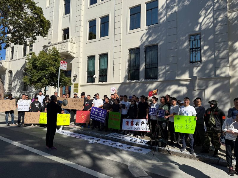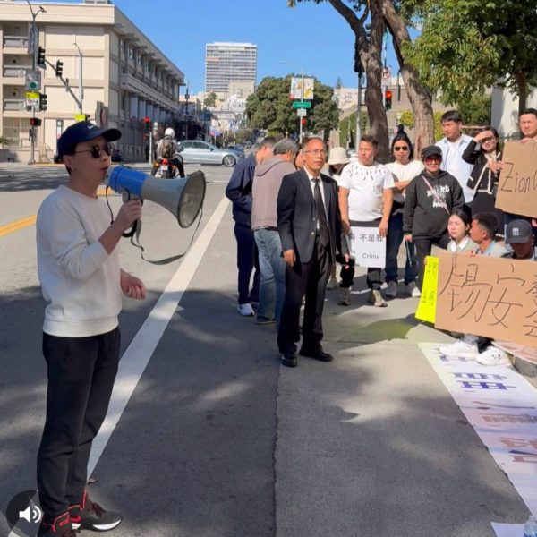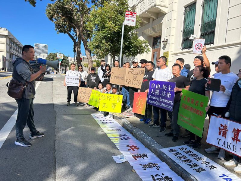 【大紀元記者林若水舊金山報導】2025年10月19日星期日,由中國民主黨與中國民主教育基金會聯合主辦的《抗議中共迫害錫安教會,要求立即釋放所有成員》集會,在舊金山中共領事館前舉行。活動吸引了來自灣區各地的數十位民運人士與信徒,他們高舉橫幅、手持標語,齊聲呼籲中共立即停止對宗教信仰群體的鎮壓。